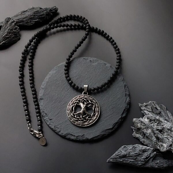 Laavakivist kaelakee kauni elupuu ripatsiga